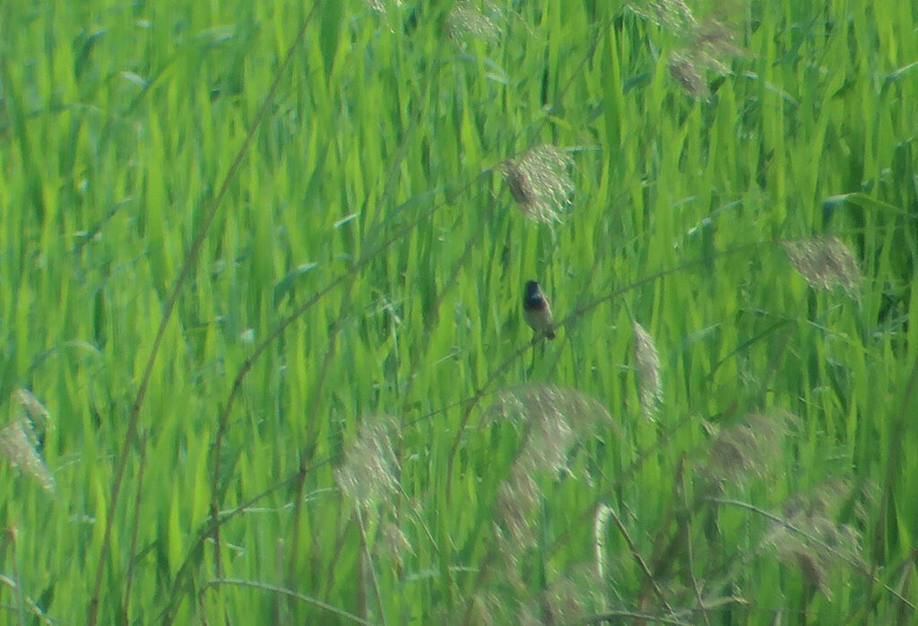Nach einem kurzen Abstecher zur Donau an die Gmünder Au (Bild) gelangen wir gegen 16.45 Uhr noch in das Gebiet Pfatterer Au (Bild). Hier hat man schöne Einblicke in die Alte Donau und Feuchtwiesen. Helmut erkennt im Gebüsch am gegenüberliegenden Ufer eine Thunbergschafstelze, die sich wegen der großen Entfernung leider nicht fotografieren lässt. Dafür ist eine Nachtigall (Bild), die Helmut anfangs nur hört und dann auch entdeckt, etwas näher an uns dran. Ich freue mich sehr über diese Nachtigall, da ich im Umfeld von München nie eine sehe. »In Bayern liegt der Verbreitungsschwerpunkt in Mainfranken, südlich bis zur Hohenloher-Haller Ebene, im westlichen Oberfranken sowie entlang der Donau. … Südlich der Donau gibt es einige lokale, isolierte Vorkommen.« (Atlas der Brutvögel in Bayern, Verbreitung 2005 bis 2009; Rödl, Rudolph, Geiersberger, Weixler, Görgen; 2012, Verlag Eugen Ulmer, Stuttgart). Vom Dammweg aus können wir noch einen Schilfrohrsänger (Bild), eine Gartengrasmücke (Bild) und ein weit entferntes Blaukehlchen (Bild) sichten. Kurz vor 18 Uhr beenden wir unsere Tour und treten nach einem intensiven Tag die Heimreise an. Wir haben zwar den erhofften Seeadler nicht gefunden, aber z.B. alle bei uns heimischen Rohrsänger gehört, manche auch gesehen. Das hängt natürlich auch damit zusammen, dass ich mit Orni-Profis unterwegs war. Auf diesem Wege mal ein herzliches Dankeschön an die drei.