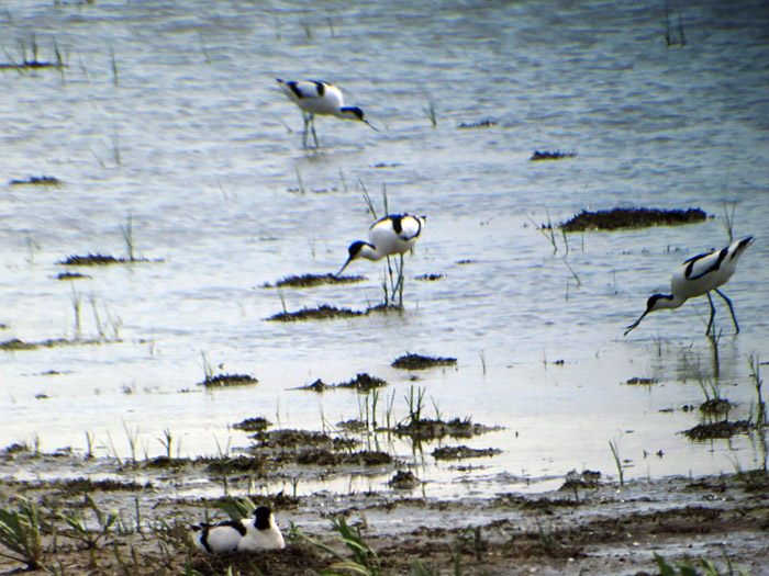 Vogeltagesliste: Höckerschwan, Graugans, Brandgans, Stockente, Schnatterente, Löffelente, Krickente, Kolbenente, Jagdfasan, Schwarzhalstaucher, Rohrdommel (Gesang), Seidenreiher, Silberreiher, Weißstorch, Löffler, Seeadler (2), Rohrweihe, Turmfalke, Blässhuhn, Säbelschnäbler, Stelzenläufer, Flussregenpfeifer, Seeregenpfeifer, Kiebitz, Rotschenkel, Uferschnepfe (7), Lachmöwe, Mittelmeermöwe, Weißflügel-Seeschwalbe, Weißbart-Seeschwalbe, Straßentaube, Ringeltaube, Türkentaube, Kuckuck, Feldlerche, Haubenlerche, Rauchschwalbe, Nachtigall, Hausrotschwanz, Amsel, Sperbergrasmücke (Gesang), Schilfrohrsänger, Drosselrohrsänger, Nebelkrähe, Rabenkrähe (?), Star, Pirol (rufend), Haussperling, Feldsperling, Stieglitz, Grünfink, Girlitz, Rohrammer, Grauammer