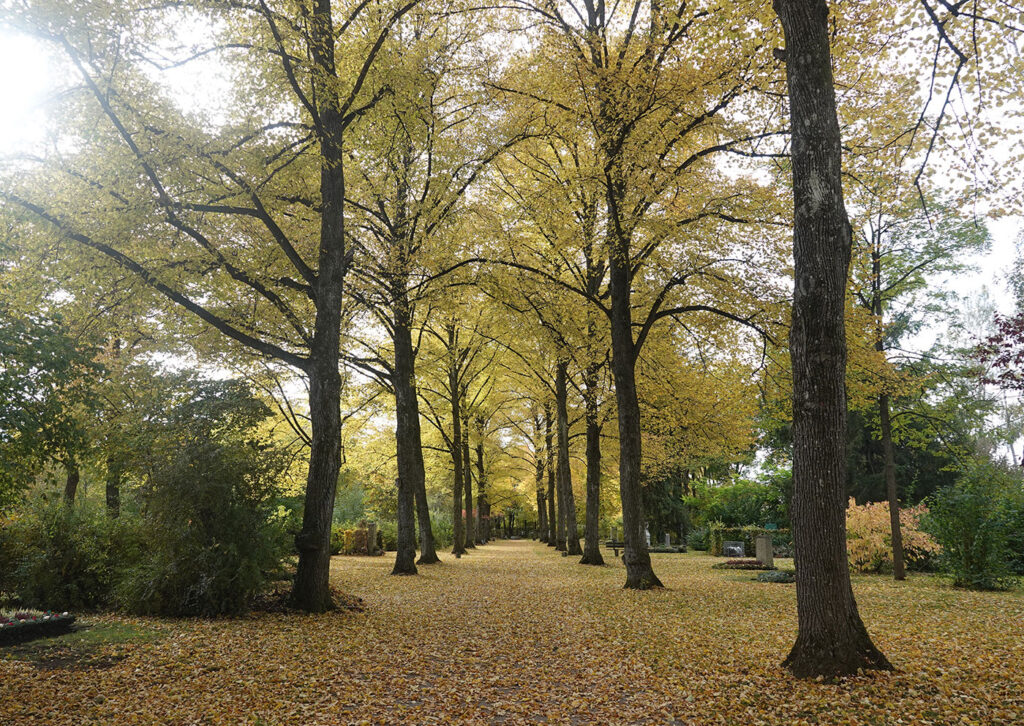 Sonntag, 19. Oktober 2025 (heiter, 12 Grad), Friedhof am Perlacher Forst, München, 14.30 bis 16.15 Uhr