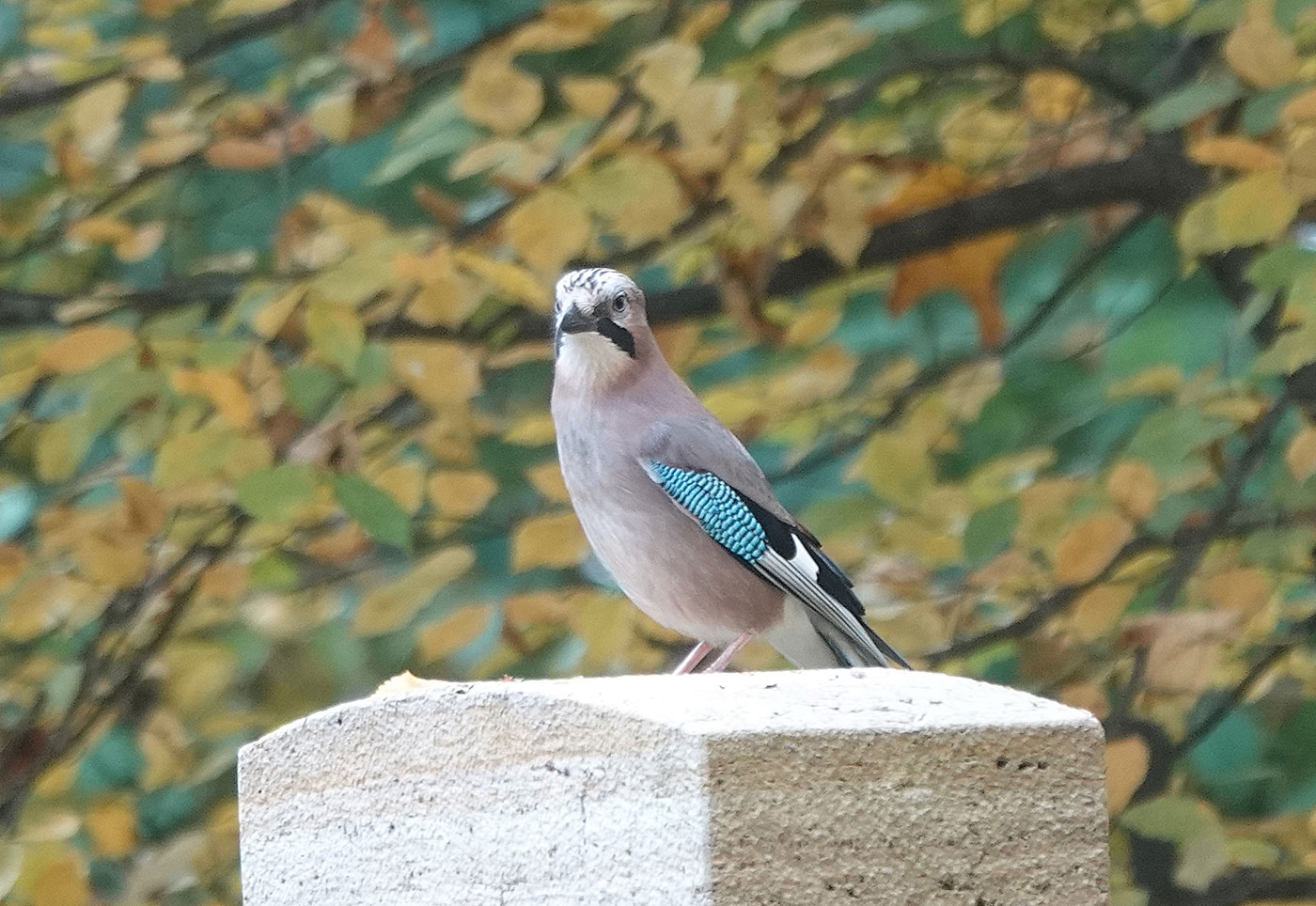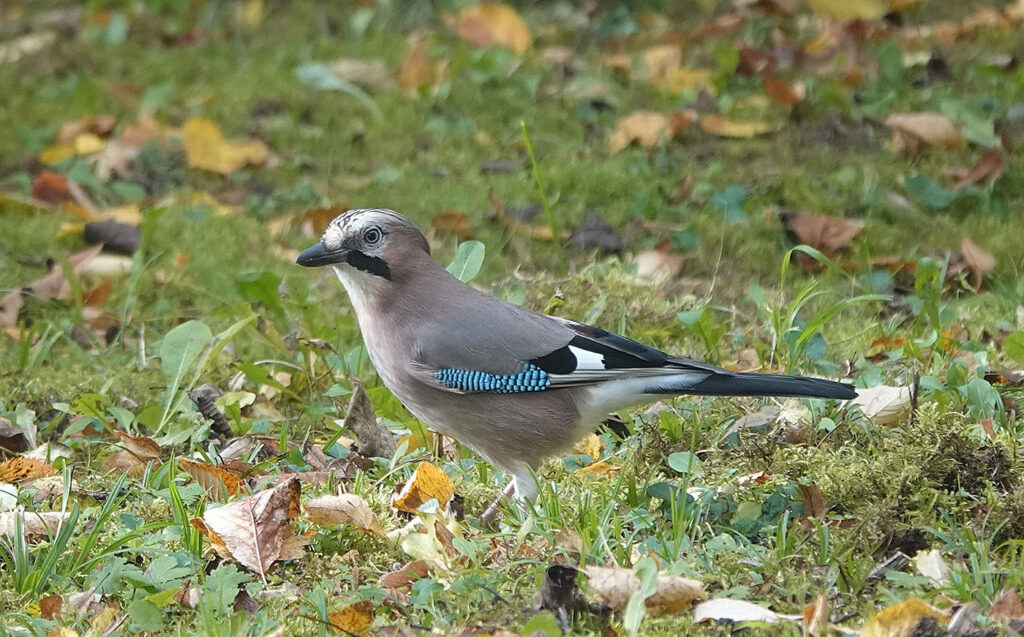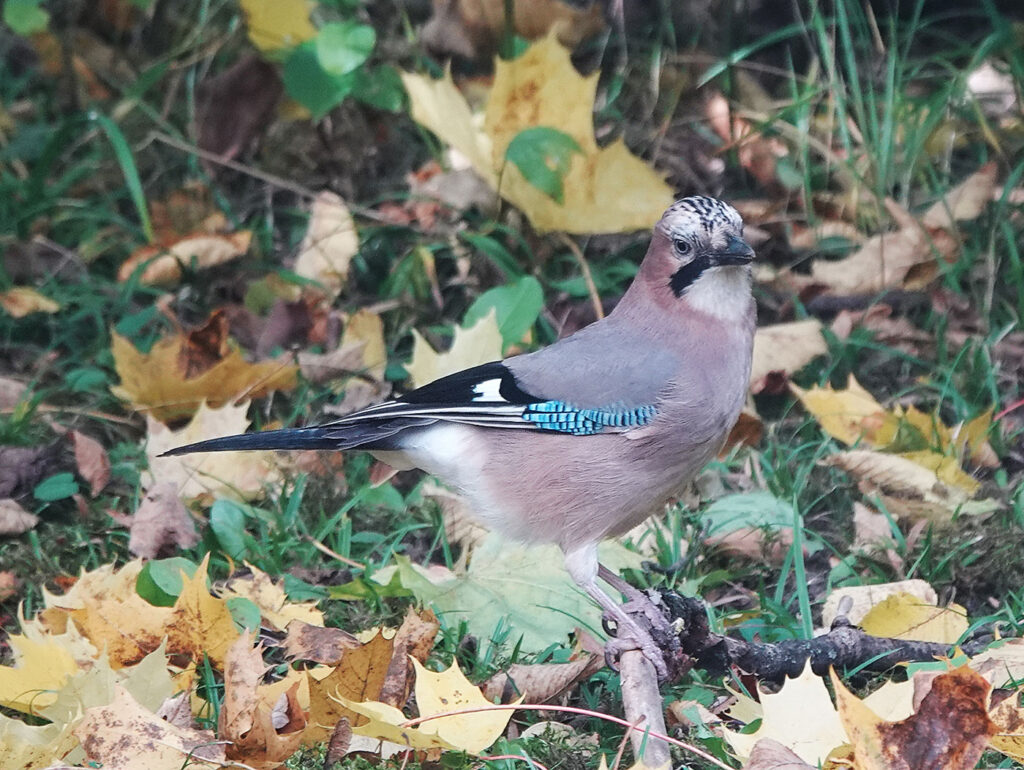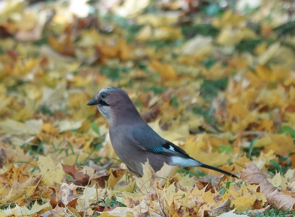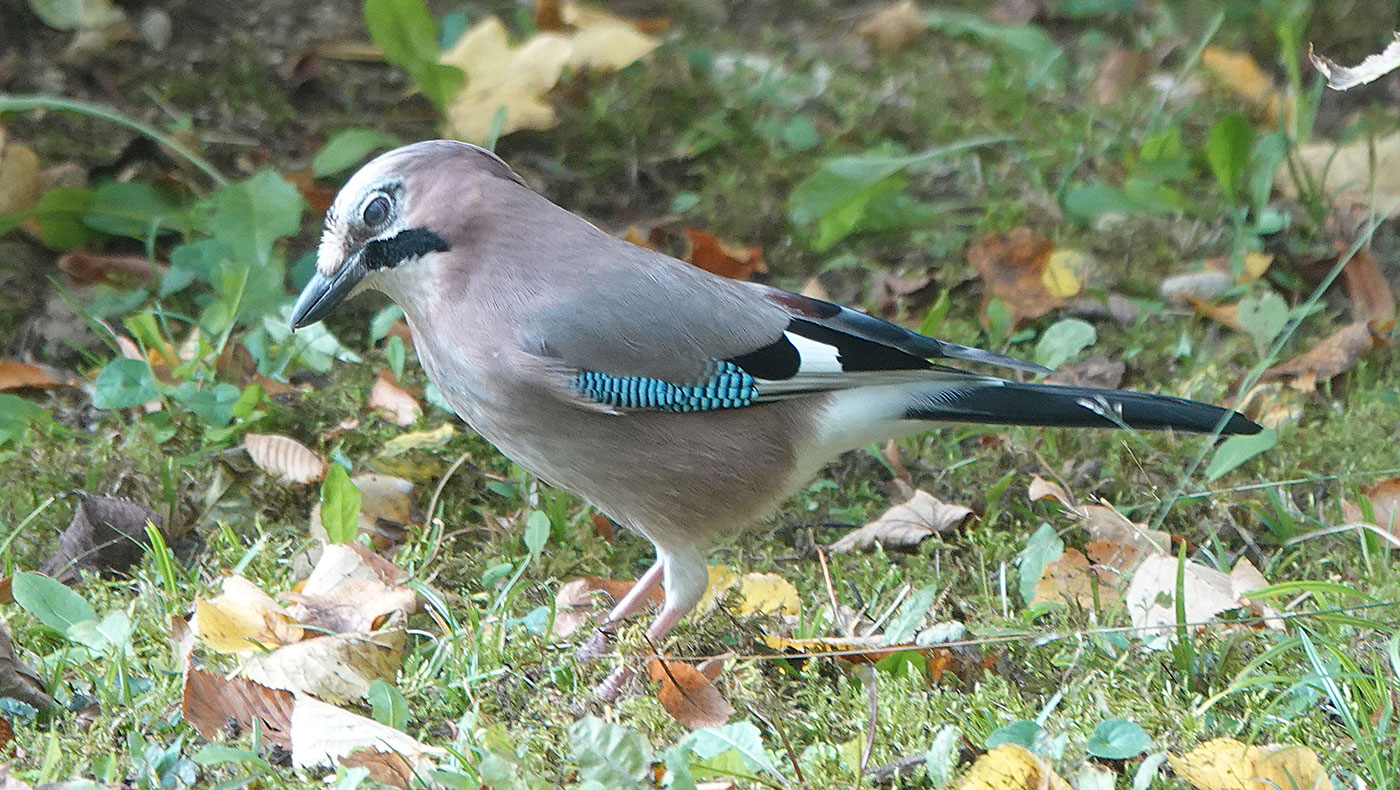 Bei herbstlichem Wetter mache ich einen Spaziergang über den Münchner Friedhof am Perlacher Forst (Bild). Ein Buntspecht (Bild) und eine Kohlmeise (Bild) zeigen sich von ihrer besten Seite. Das kann man heute auch vom Eichelhäher (Bilder) behaupten. Lange kann ich ihn bei der Futtersuche beobachten. Der Eichelhäher ist ein Singvogel aus der Familie der Rabenvögel. Singen habe ich ihn bei meinen bisherigen Touren noch nie gehört, aber seinen Ruf, ein lautes, etwas heiser klingendes »Krschäääh« (Tonbeispiel auf xeno-canto.org), das er in kurzen Abständen wiederholt, kann man dagegen oft vernehmen. Damit warnt er die anderen Tiere vor Feinden wie Eule, Habicht oder Marder. Er brütet in lichten, strukturreichen Wäldern aller Art; in Mitteleuropa bevorzugt er Misch- und Laubwälder. Auch in Friedhöfen und Parks entdecke ich ihn immer wieder. Süd- und westeuropäische Eichelhäher sind Standvögel, d.h. sie verbringen das ganze Jahr in ihrem Revier. Im Sommer ernährt er sich überwiegend von tierischer Nahrung wie Raupen, Käfern und Spinnen, wobei er auch Eier und Jungvögel nicht verschmäht. Im Winter stellt er seine Nahrung auf Eicheln, Bucheckern und andere Nüsse um. Bereits im Herbst beginnt der Eichelhäher, Eicheln für den Winter zu sammeln. Dafür fliegt er mitunter weite Strecken von bis zu acht Kilometern. Bei diesen Sammelflügen kann er bis zu elf Stunden am Tag unterwegs sein. Ein Eichelhäher kann bis zu zehn Eicheln in seinem Kehlsack aufnehmen und in sein Revier transportieren. Dort versteckt er die Eicheln im Boden, in Löchern und Spalten. Da er später nicht alle Verstecke wiederfindet, trägt er dazu bei, dass junge Eichen wachsen und der Wald damit auf natürliche Weise verjüngt wird. Damit nimmt er den Förstern sogar Arbeit ab. Leider dürfen in Bayern immer noch Eichelhäher abgeschossen werden.