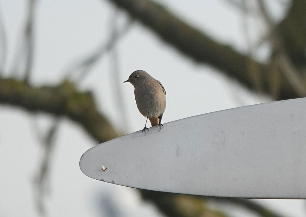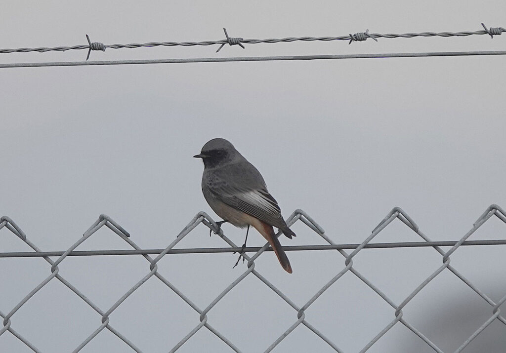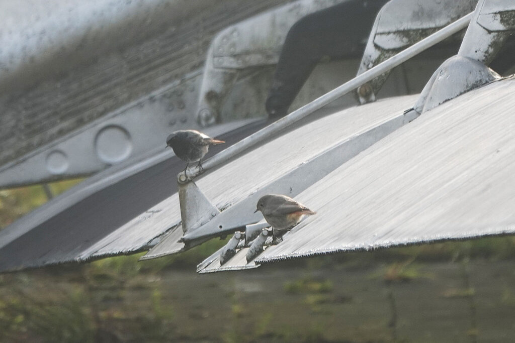 Der Besucherpark des Flughafens München steht schon lange auf meiner To-do-Liste. Obwohl das Wetter heute nicht ganz ideal ist, mache ich mich per S-Bahn auf den Weg. Von der Haltestelle »Besucherpark« aus gehe ich über die Brücke in nordöstliche Richtung bis zum Kindergarten. Ich wandere entlang der Nordallee und schließlich steige ich den kleinen Hügel hinauf zum Aussichtspunkt. Von dort hat man einen guten Blick über das Gelände und auch eine schöne Sicht auf die historischen Flugzeuge (Bild). Mindestens sieben Hausrotschwänze (einige davon auf den Bildern) kann ich lange und ausgiebig beobachten. Die zur Familie der Fliegenschnäpper gehörenden Singvögel sitzen gerne auf erhöhten Ansitzwarten, die sie hier auf den Flugzeugen und Zäunen zur Genüge finden. Von dort fliegen die Männchen und Weibchen immer wieder auf den kurzen Rasen um sich Insekten, Spinnen oder andere wirbellose Kleintiere zu holen.