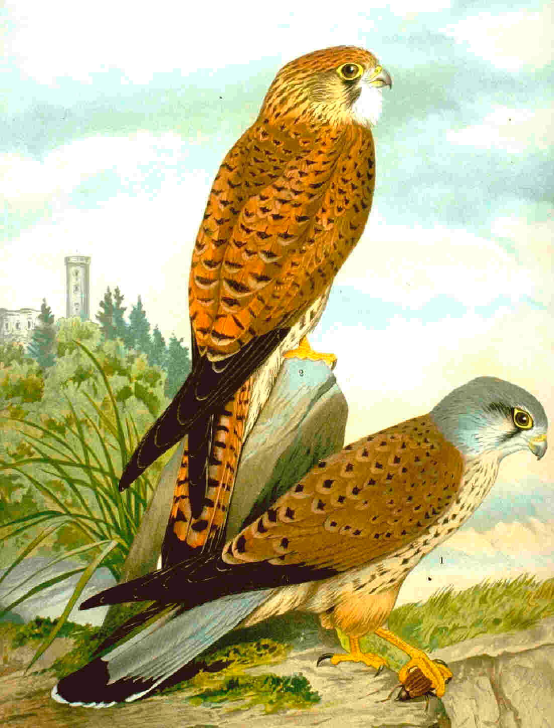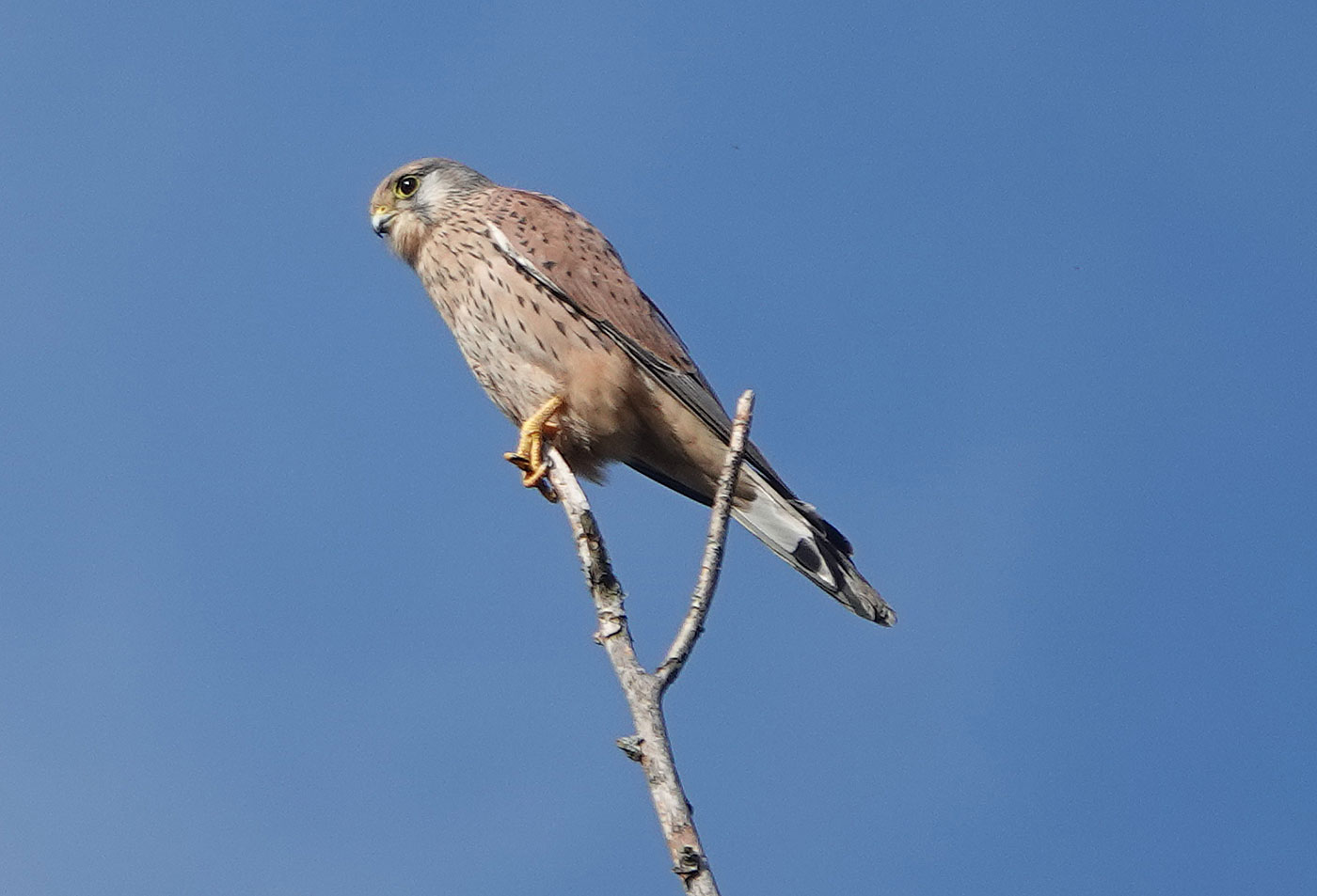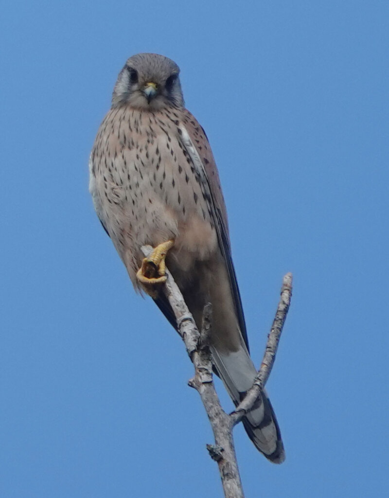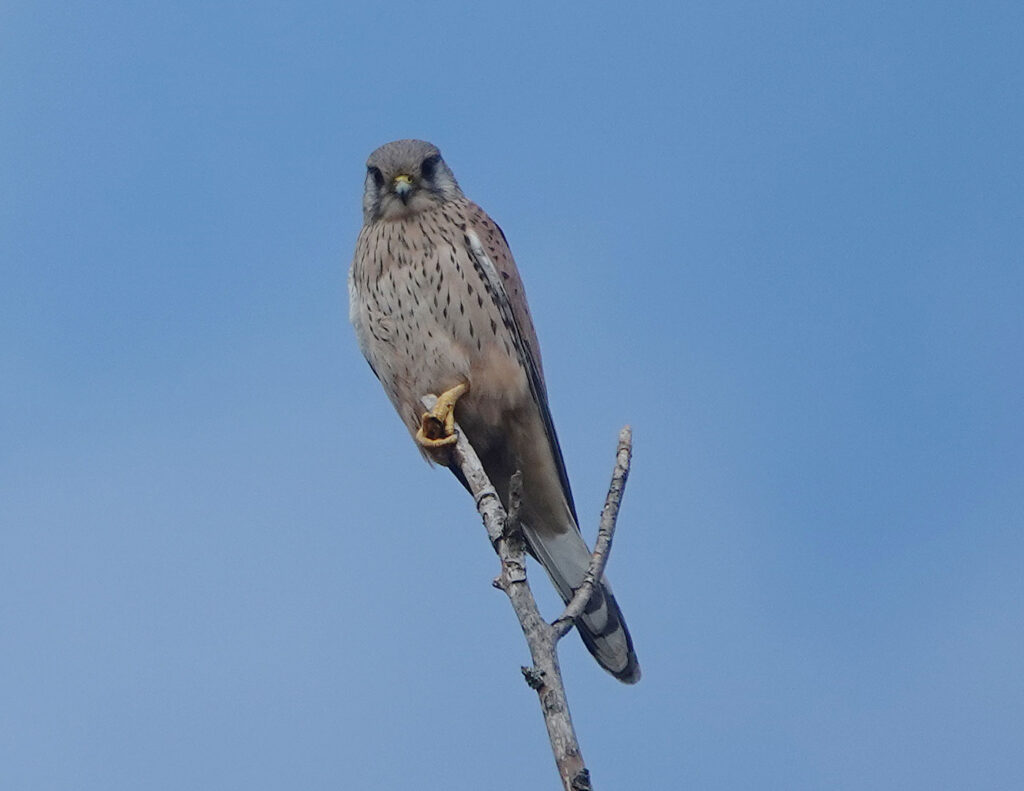 Vogeltagesliste: Sperber, Turmfalke, Blaumeise, Kohlmeise, Gartenbaumläufer, Rabenkrähe, Kleiber, Schwanzmeise, Zilpzalp