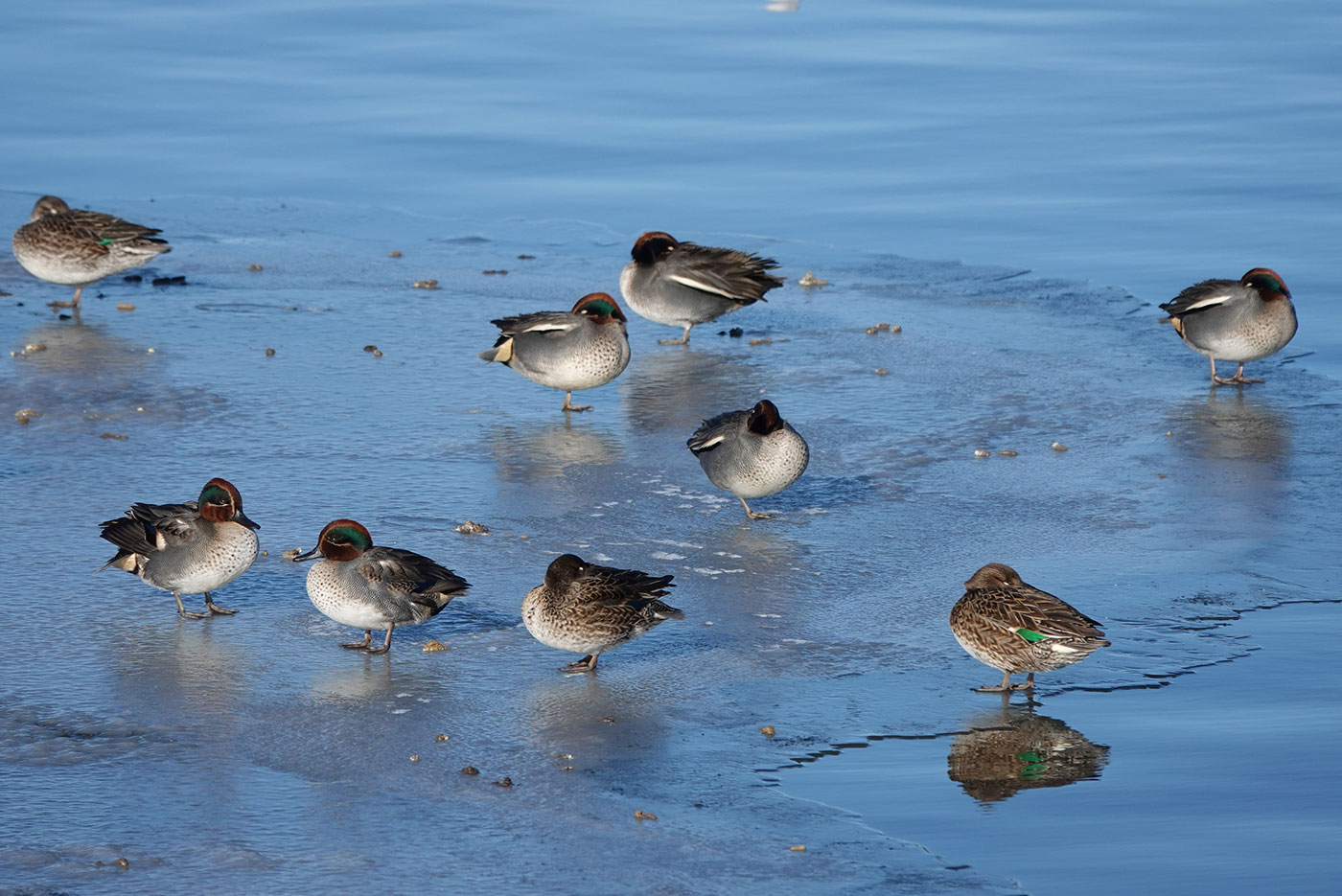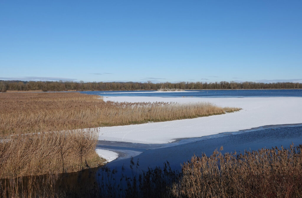 Sonntag, 4. Januar 2026 (sonnig, minus 2 Grad), Moosburger Stausee, 11.15 bis 12 Uhr; Echinger Stausee, 12.20 bis 14.45 Uhr