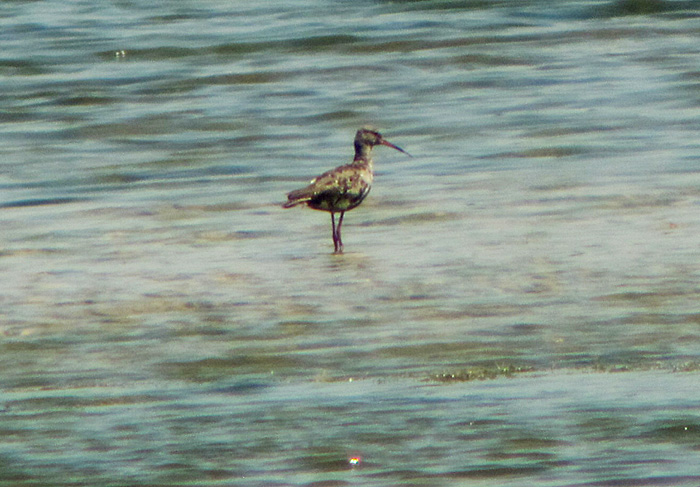 Auf der Insel im Ostbecken halten sich ungefähr sechs Flussuferläufer (zwei davon im Bild) auf. Später kann ich im Kanal insgesamt noch 15 Flussuferläufer zählen. Eine jugendliche Lachmöwe (Bild) döst auf den warmen Steinen. Heute ist ungewöhnlich wenig Wasser im Speichersee und es stinkt etwas. Ich fahre den Süddamm bis an das östliche Ende. Hier sind einige flache Stellen mitten im See. Ein Grünschenkel und ein Dunkler Wasserläufer (Bild) halten sich hier zusammen mit ca. 15 Flussseeschwalben (Bilder) auf. So viele Flussseeschwalben sind um diese Zeit hier eher ungewöhnlich, aber vermutlich haben einige, die ihre Brut am Echinger Stausee (bei Landshut) wegen der ungünstigen Witterung im Mai/Juni verloren haben, beschlossen, am Speichersee die Zeit bis zum Wegzug zu verbringen. Und ein paar Rätsel-Enten (Bild) habe ich auch noch entdeckt!